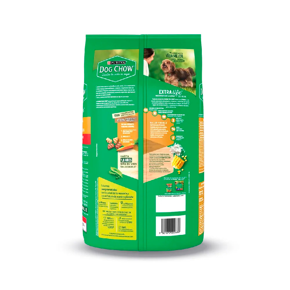 Ofrece a tu perro de raza pequeña una nutrición superior con Dog Chow. Este alimento completo, sabor carne y pollo, presenta croquetas adaptadas a su tamaño para una fácil masticación. Su fórmula con prebióticos naturales fortalece la salud digestiva, los omegas 6 y 3 le dan un pelaje sano y brillante, y su exclusiva mezcla de antioxidantes ayuda a proteger su vitalidad. Es la opción ideal para asegurar que tu pequeño compañero viva una vida larga y feliz.